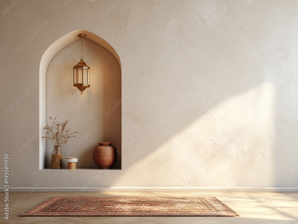 Soft Sunlight Hits Textured Wall And Rug Arched Wallpaper Mural - Decorly Solutions | Decorly Solutions