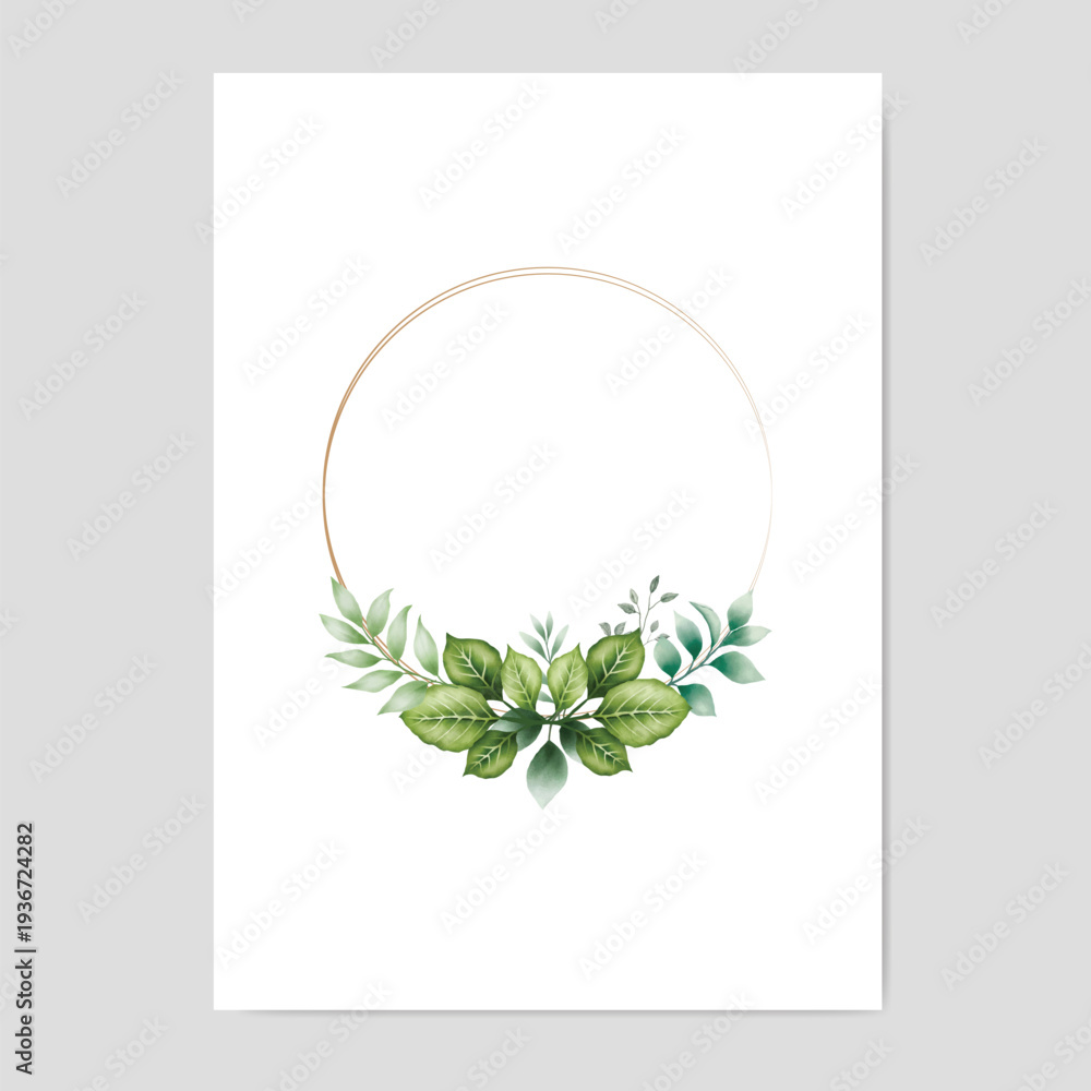 wedding invitation card template with green leaf watercolor on white background
