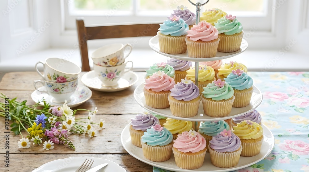 Graceful Spring Tea Party With Delicate Floral China, Festive Iced Easter Cakes, And Fresh Blooms For A Charming Seasonal Gathering