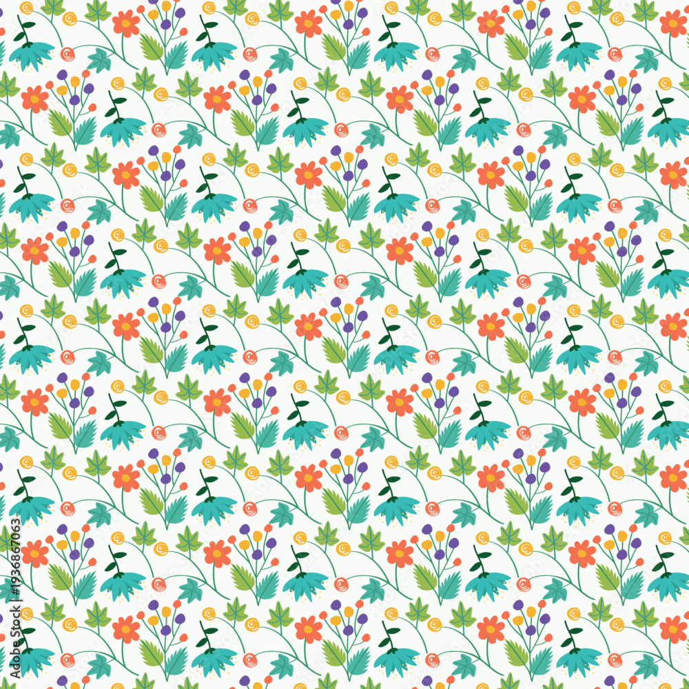 Seamless Floral Pattern With Colorful Flowers And Leaves Wallpaper Mural - Decorly Solutions | Decorly Solutions