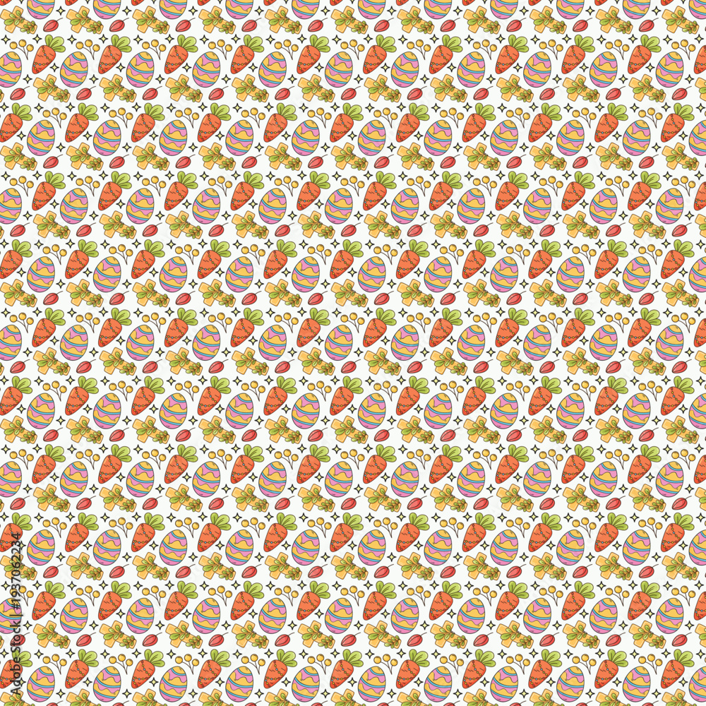 Whimsical Easter Pattern Featuring Handdrawn Carrots And Decorated Wallpaper Mural - Decorly Solutions | Decorly Solutions