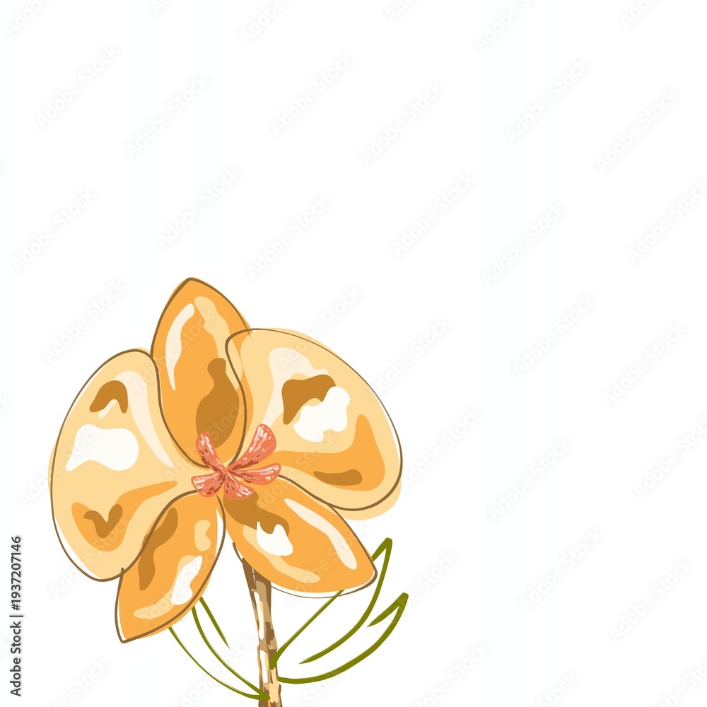 Beautiful Orchid Yellow Petal With Leafs Illustration Isolated Wallpaper Mural - Decorly Solutions | Decorly Solutions
