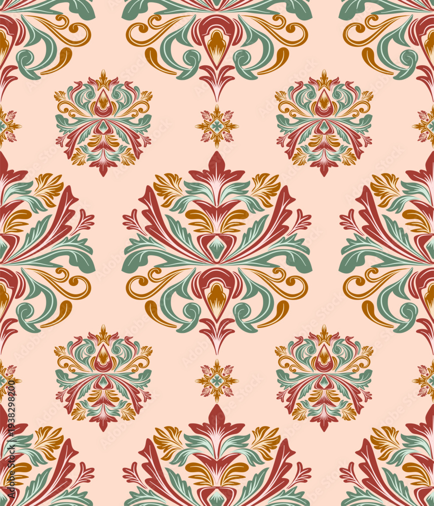Damask Seamless Floral Pattern Vintage Design Vector Illustration Wallpaper Mural - Decorly Solutions | Decorly Solutions