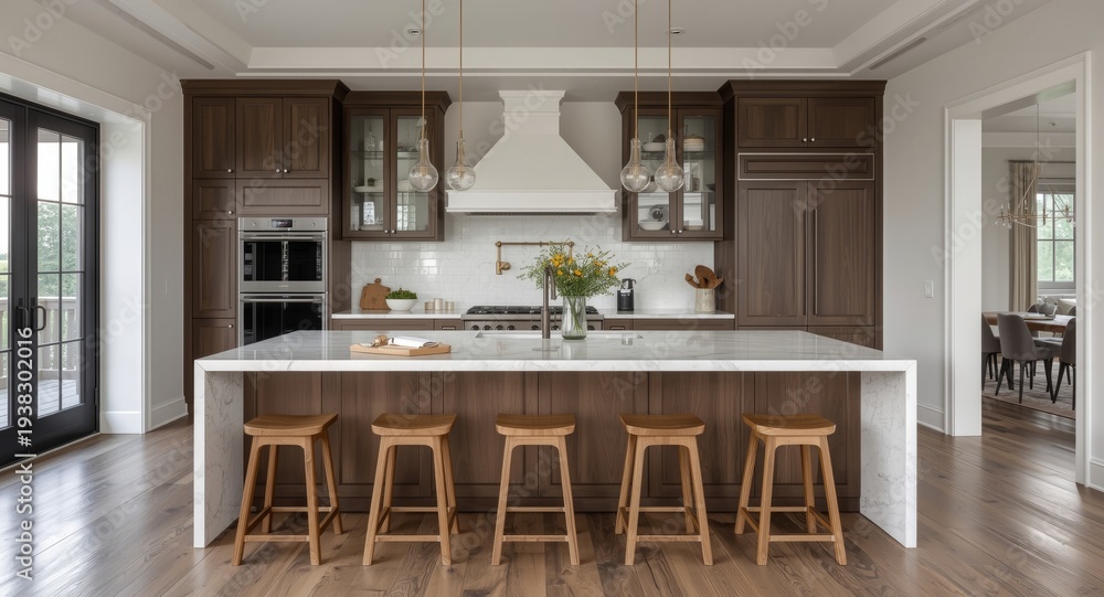 Elegant Kitchen Design With A Rustic Dining Table Wallpaper Mural - Decorly Solutions | Decorly Solutions