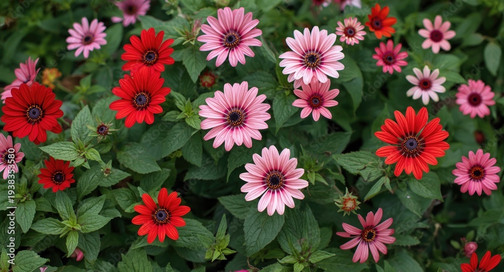 Annual terrestrial plants with red and pink flowers featurin Wallpaper