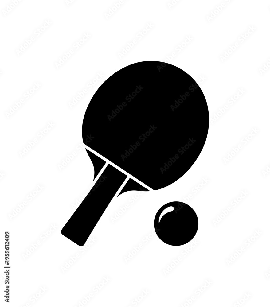 Black Ping Pong Paddle And Ball Vector Icon Wallpaper Mural - Decorly Solutions | Decorly Solutions