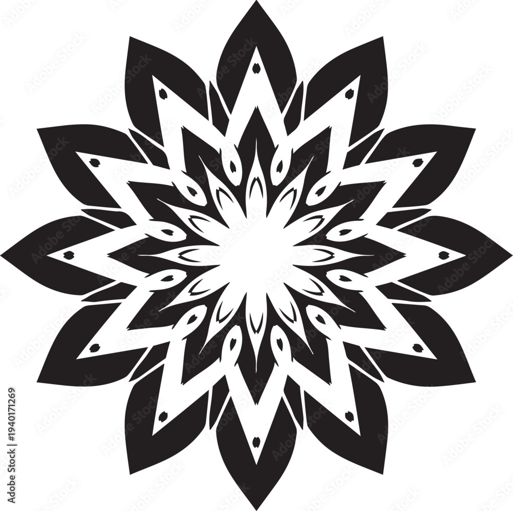 Black Geometric Flower Or Star Shape On A White Background Abstract Pattern