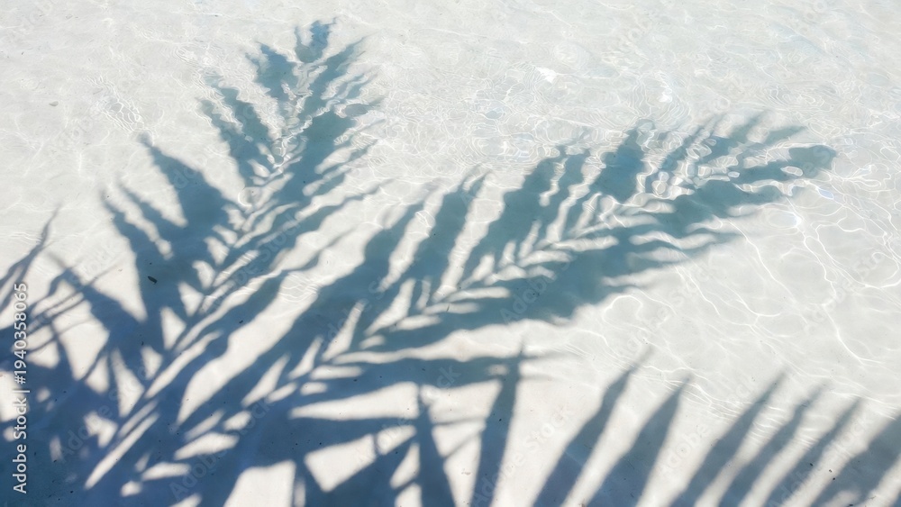 Clear blue skies with fluffy clouds reflect sunlight on a serene beach scene. Gentle waves wash ashore on soft sand creating a peaceful atmosphere.