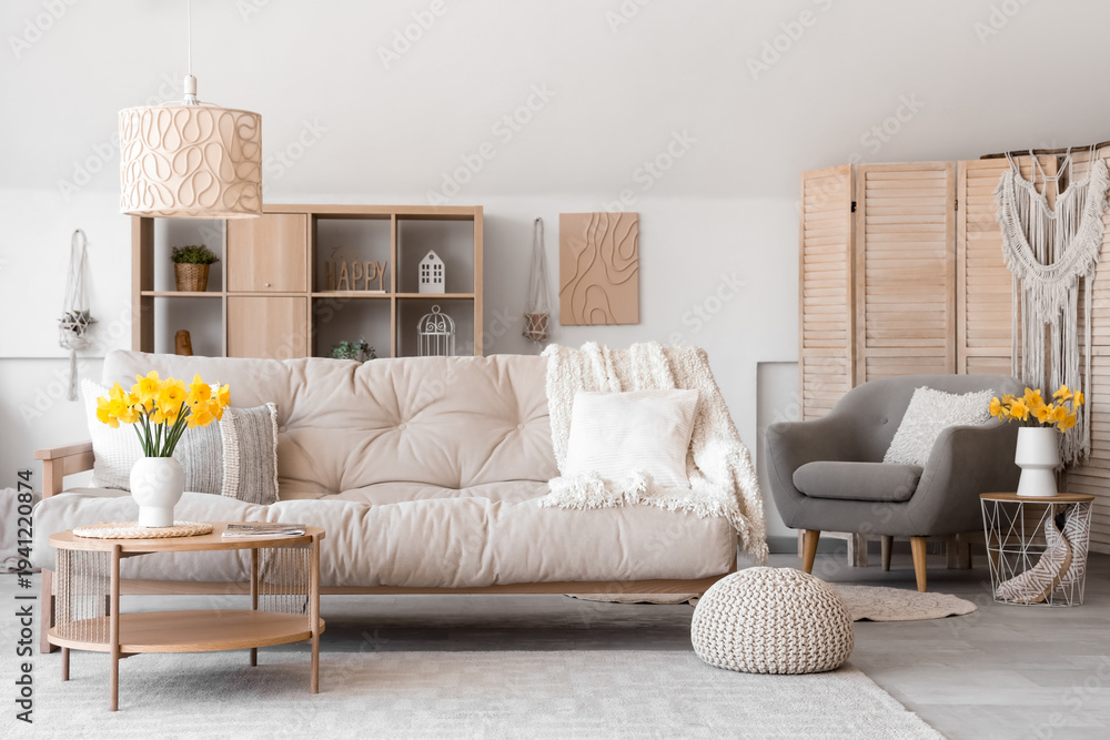 Interior Of Stylish Living Room With Sofa Coffee Wallpaper Mural - Decorly Solutions | Decorly Solutions