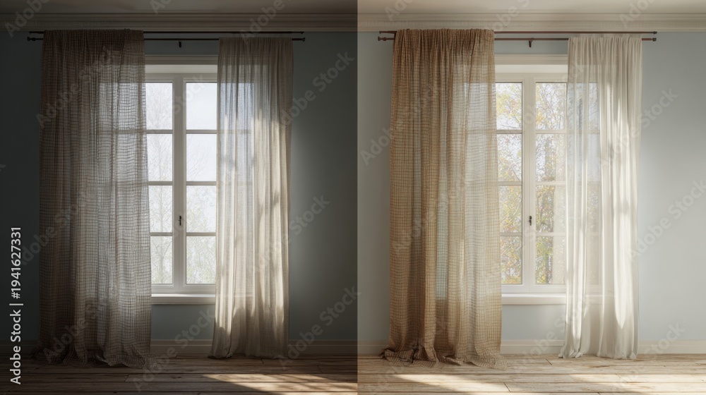 Sunlit Window Interior With Sheer Curtains And Wooden Wallpaper Mural - Decorly Solutions | Decorly Solutions