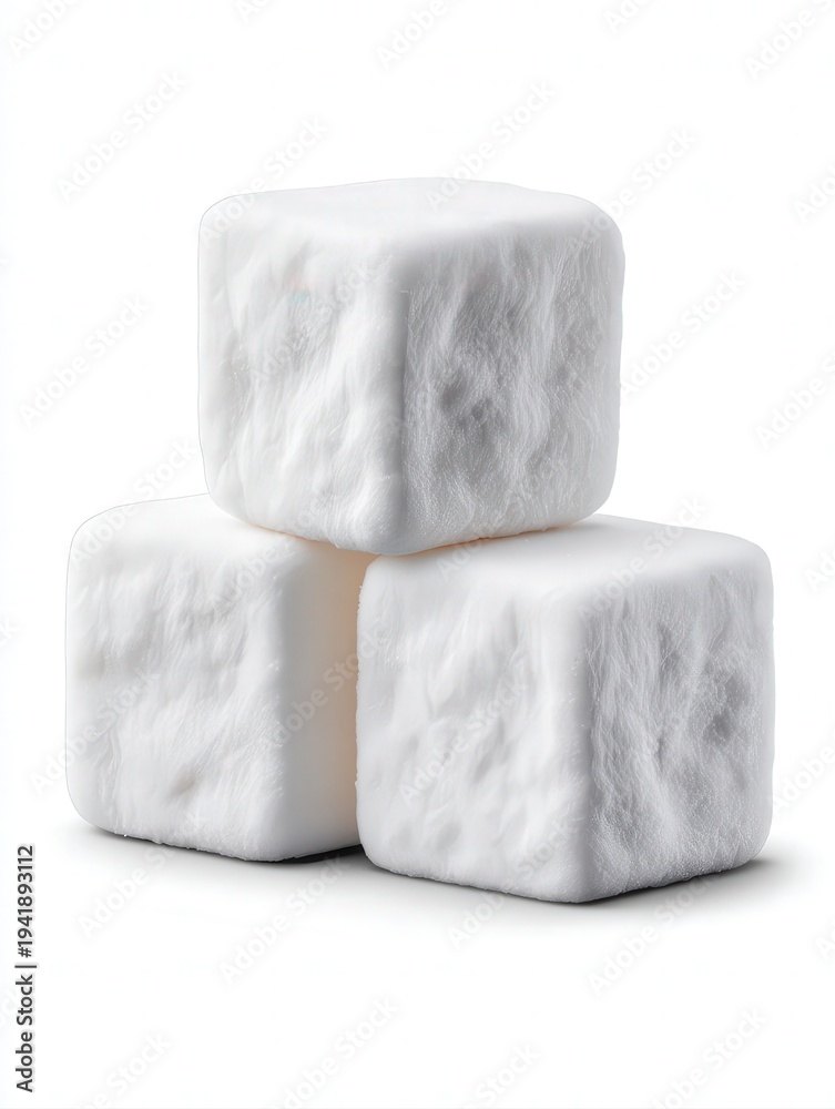 Three fluffy marshmallows stacked neatly, perfect for desserts, hot chocolate, or festive treats. transparent background