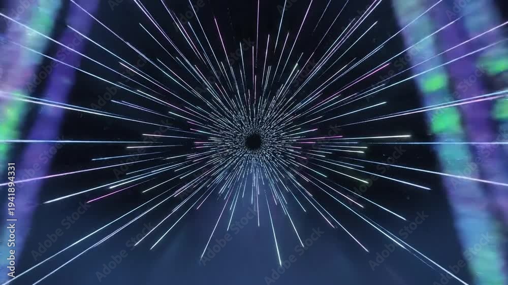 Abstract digital explosion with radiating lines in dark background