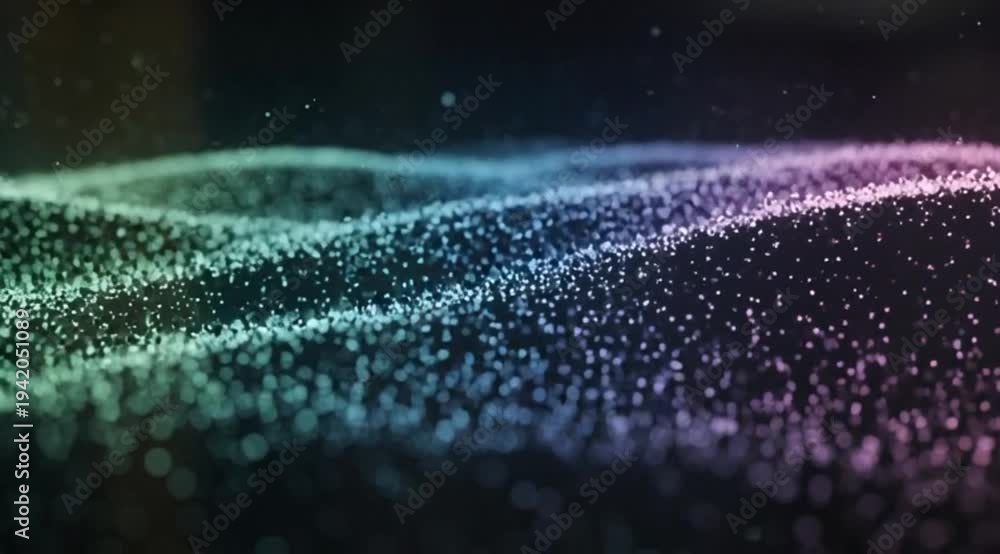 Serene teal particle waves flowing across a dark expanse in a digital art piece.