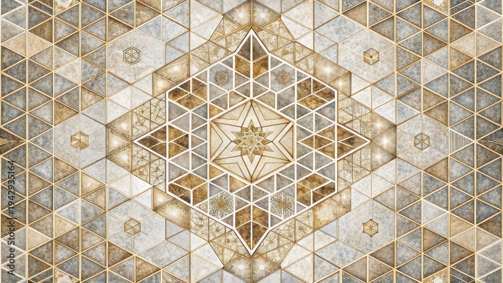 Intricate Geometric Design Featuring Golden Accents And Subtle Wallpaper Mural - Decorly Solutions | Decorly Solutions