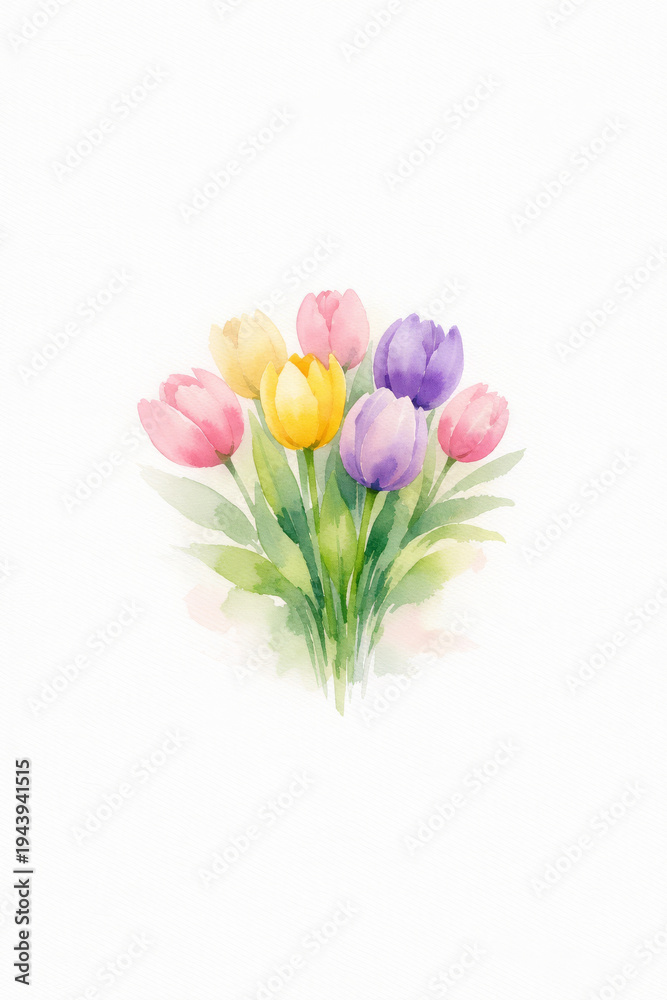 Tulip Bouquet Watercolor Flower Blossom Spring Colorful Petal Wallpaper Mural - Decorly Solutions | Decorly Solutions