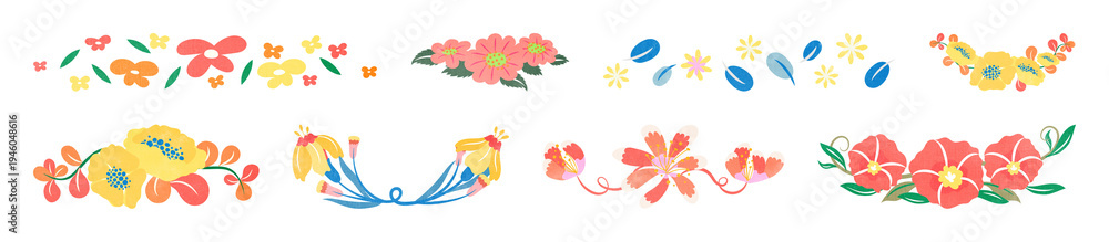 Png Colorful Floral Decorative Elements Set On Transparent Wallpaper Mural - Decorly Solutions | Decorly Solutions