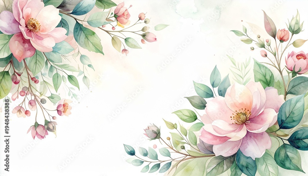 Horizontale Aquarell-blumenkomposition Als Dekorativer Banner Wallpaper Mural - Decorly Solutions | Decorly Solutions