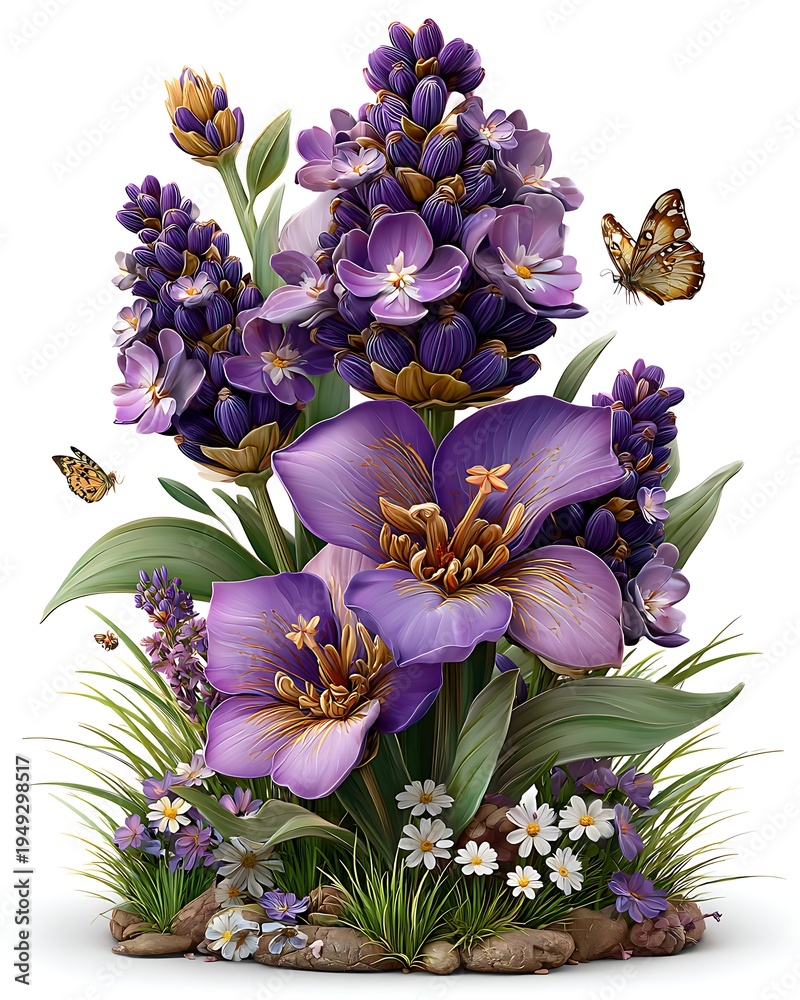 Purple Floral Botanical Illustration With Butterflies High Resolution Wallpaper Mural - Decorly Solutions | Decorly Solutions