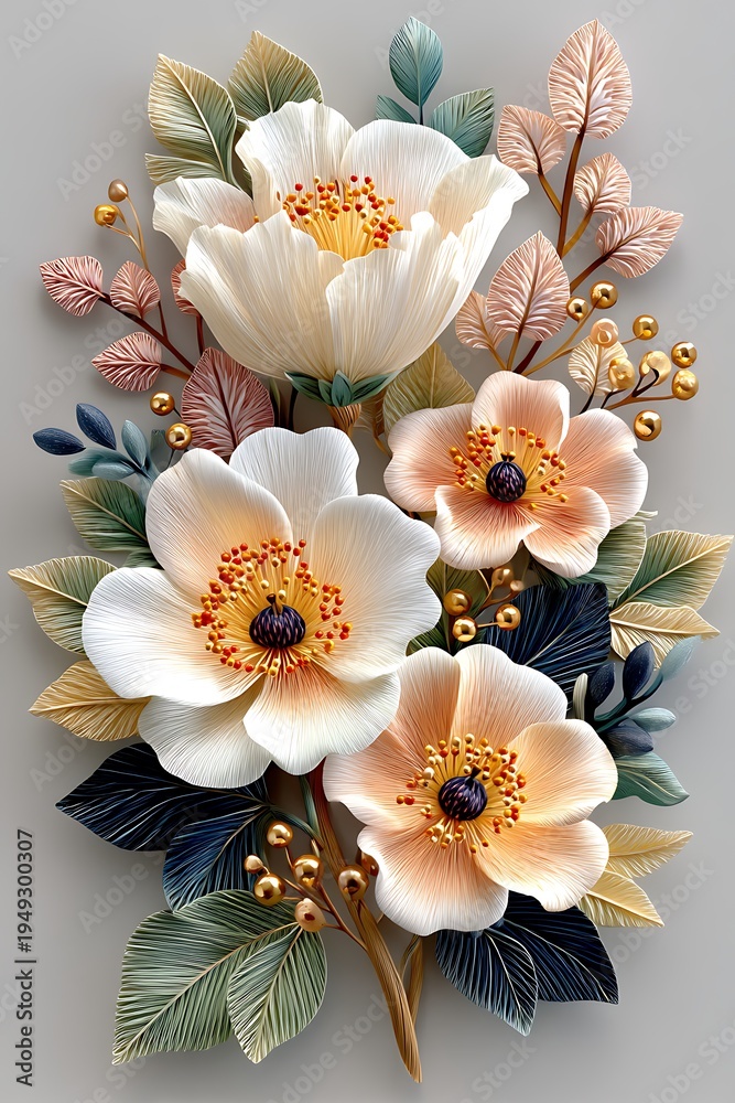 Soft Blush Flower Bouquet Artistic Golden Details High Wallpaper Mural - Decorly Solutions | Decorly Solutions