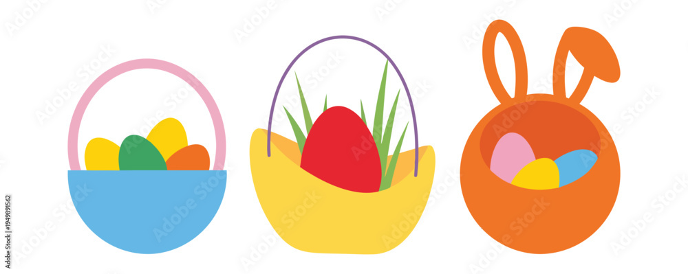 Easter Baskets And Eggs In Various Colors And Wallpaper Mural - Decorly Solutions | Decorly Solutions