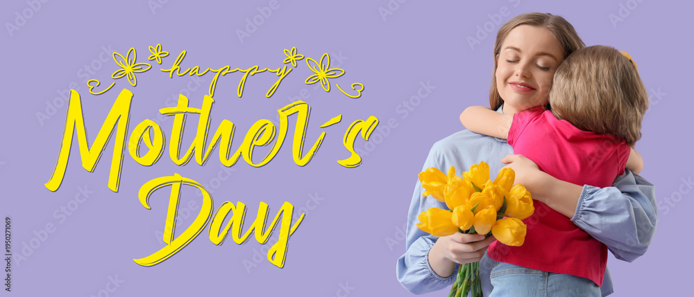 Cute Little Girl Hugging Her Mom And Greeting Wallpaper Mural - Decorly Solutions | Decorly Solutions