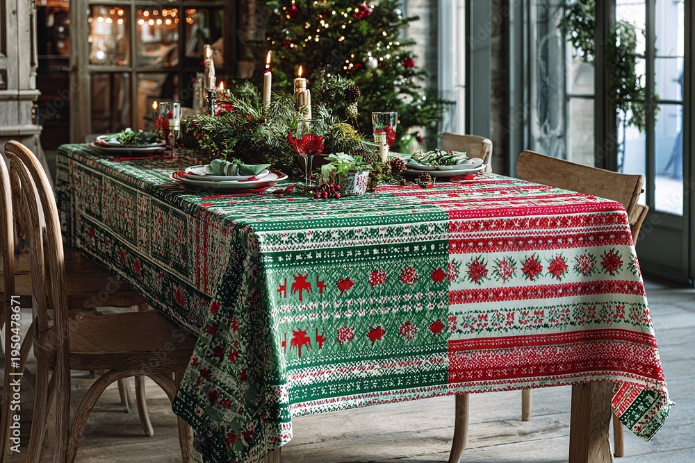 Festive Christmas Dining Sheet Table Cover With Red Wallpaper Mural - Decorly Solutions | Decorly Solutions