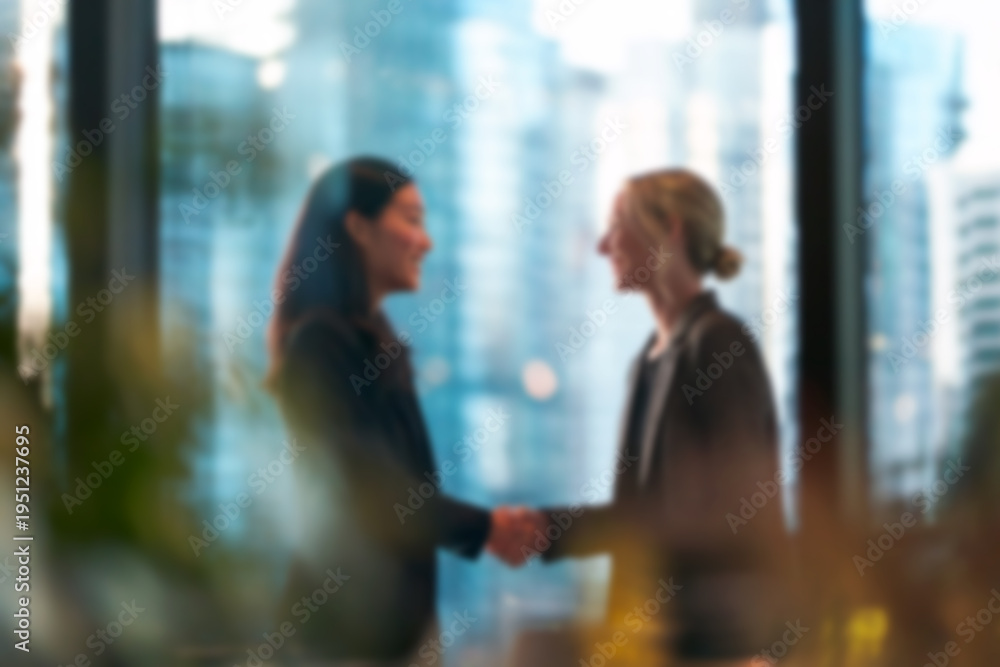 Blurred Two Professional Businesswomen Shaking Hands In Modern Wallpaper Mural - Decorly Solutions | Decorly Solutions