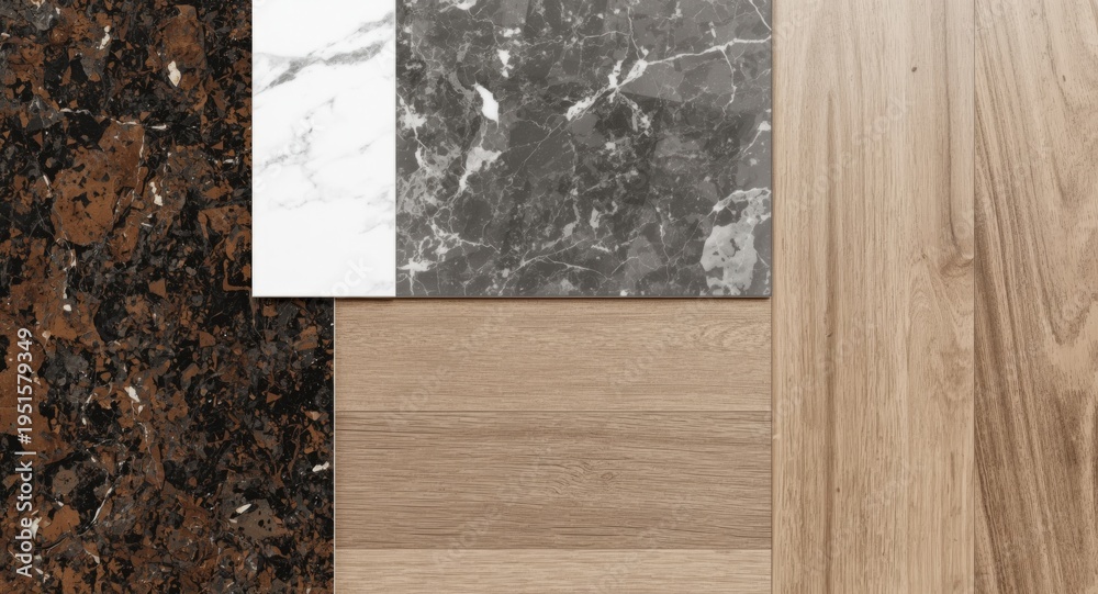 Modern Style Material Samples Board With Polished Marble Wallpaper Mural - Decorly Solutions | Decorly Solutions