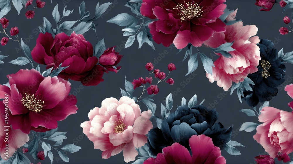 Seamless Pattern Of Large Red Pink And Dark Wallpaper Mural - Decorly Solutions | Decorly Solutions