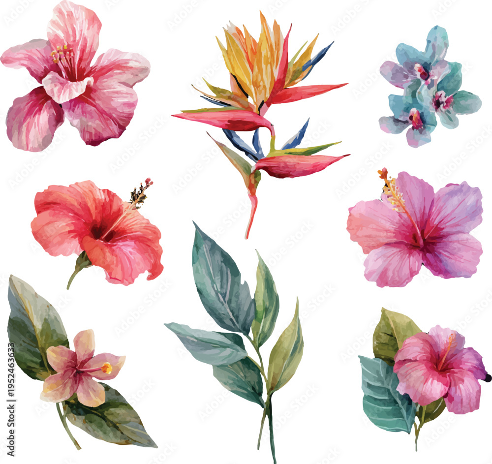 Set Of Flowers And Leaves Wallpaper Mural - Decorly Solutions | Decorly Solutions