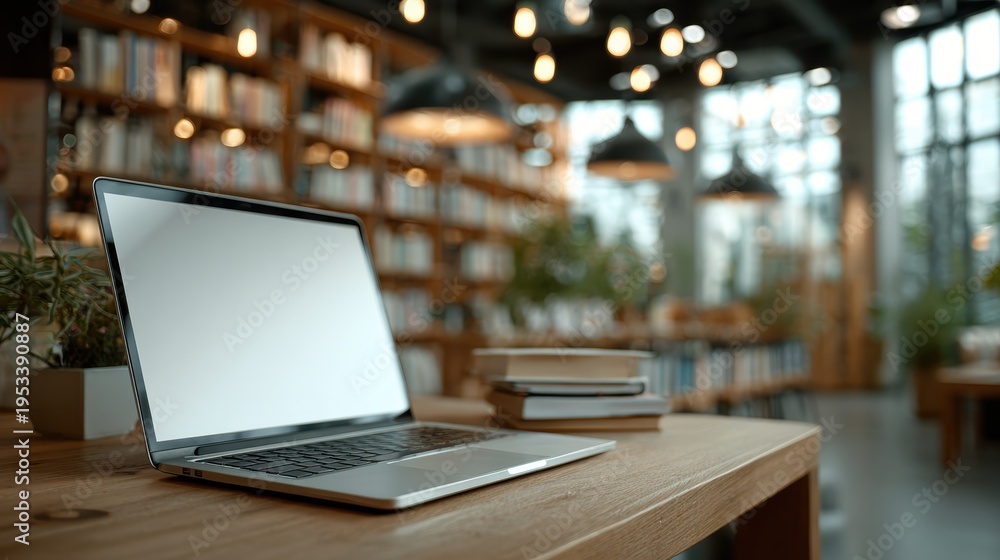 Laptop With Blank Screen On Table In Modern Wallpaper Mural - Decorly Solutions | Decorly Solutions