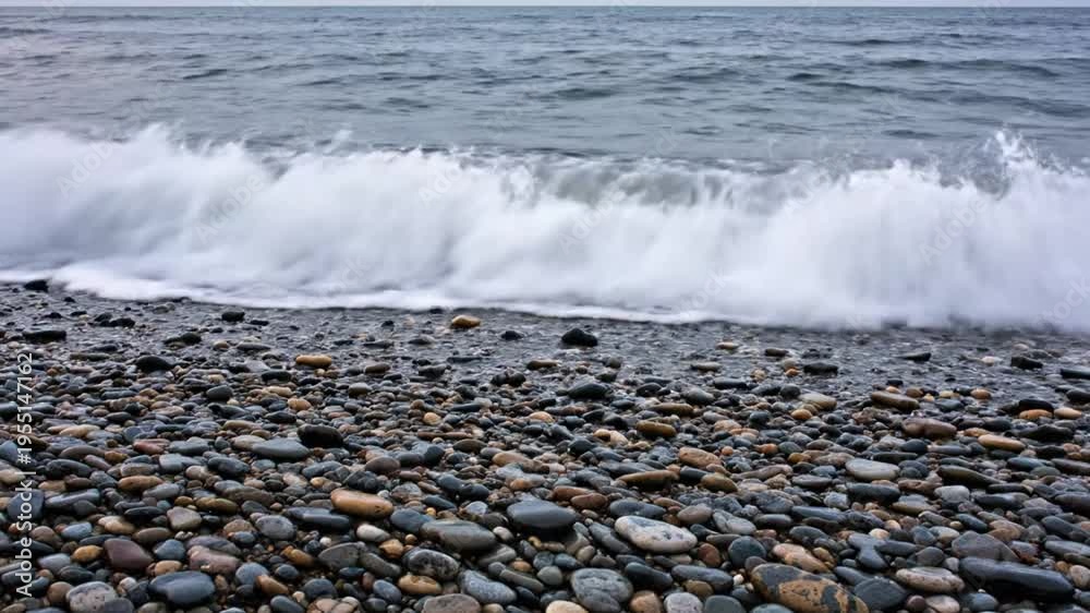 Waves Crashing On A Pebble Beach With Grey Wallpaper Mural - Decorly Solutions | Decorly Solutions