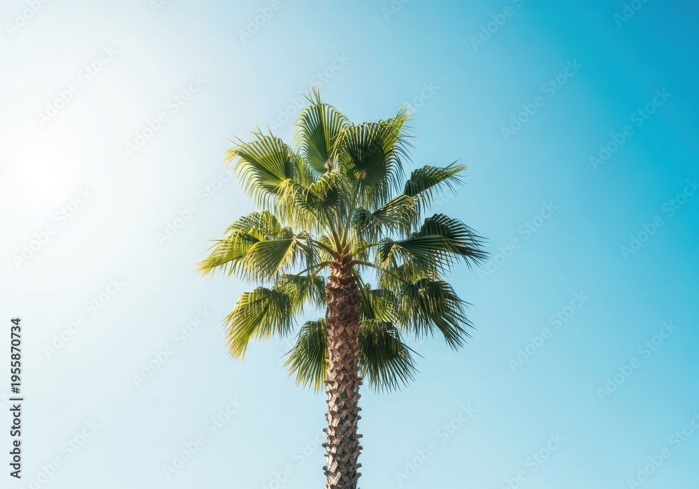 Majestic tropical palm tree reaches high toward the bright a Wallpaper