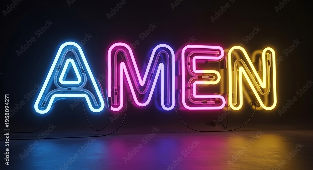 Neon Sign Saying Amen Illuminated In Vibrant Colors Wallpaper Mural - Decorly Solutions | Decorly Solutions