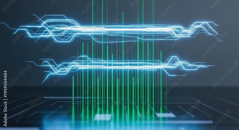 Holographic Layers Of Cyan Light Streaks Emerald Green Wallpaper Mural - Decorly Solutions | Decorly Solutions