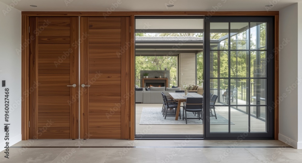 Modern Styled Interior Living Area Showcasing Wood Door Wallpaper Mural - Decorly Solutions | Decorly Solutions