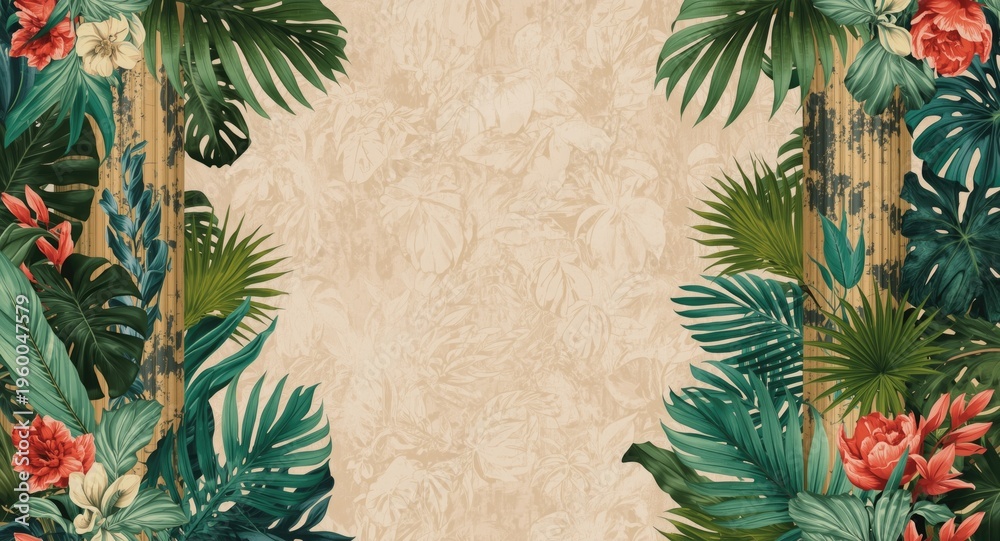 Photo Wallpaper Design Combining Exotic Tropical Plants With Wallpaper Mural - Decorly Solutions | Decorly Solutions