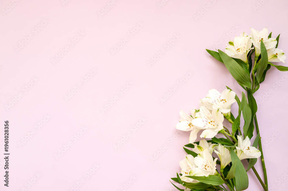 Elegant White Alstroemeria Flowers On Soft Pink Background Wallpaper Mural - Decorly Solutions | Decorly Solutions