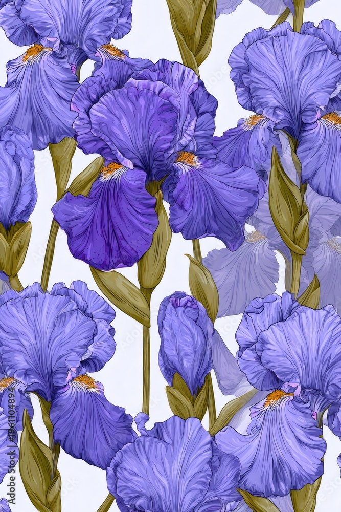 Purple Iris Flowers Creating A Seamless Botanical Pattern Wallpaper Mural - Decorly Solutions | Decorly Solutions