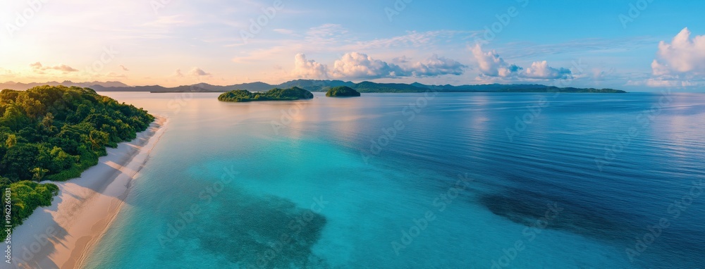 White Sand Tropical Beach With Lush Green Forest Wallpaper Mural - Decorly Solutions | Decorly Solutions