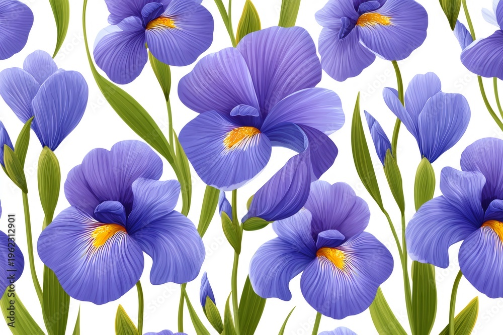 Purple Iris Flowers Creating Seamless Botanical Pattern Wallpaper Mural - Decorly Solutions | Decorly Solutions