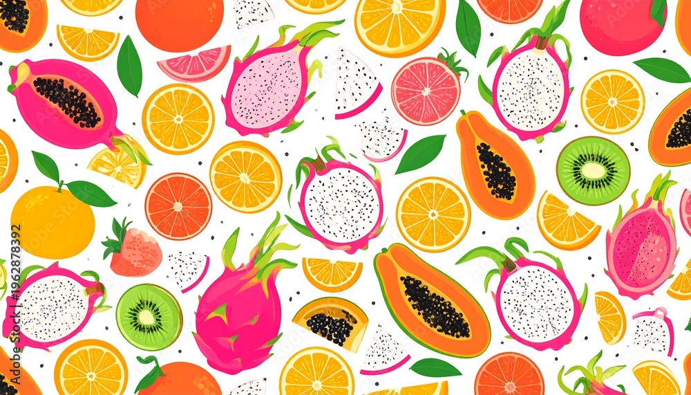 Vibrant Tropical Fruit Pattern Background With Dragon Fruit Wallpaper Mural - Decorly Solutions | Decorly Solutions