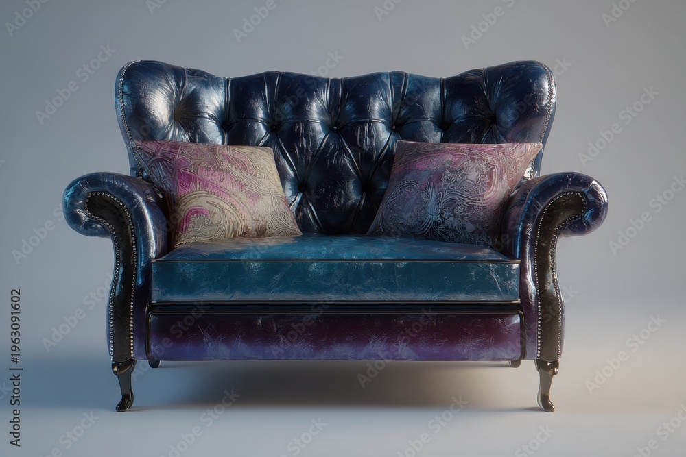 Elegant Tufted Leather Chair with Decorative Pillows Front V Wallpaper