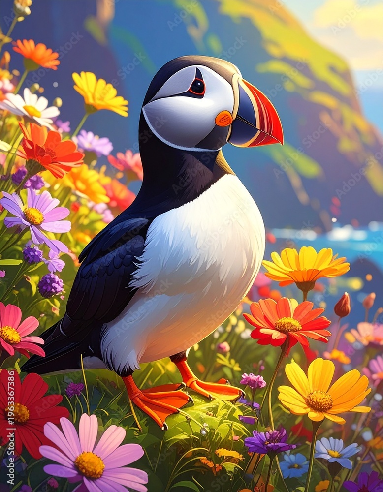 Papageitaucher im Blumenfeld Wallpaper