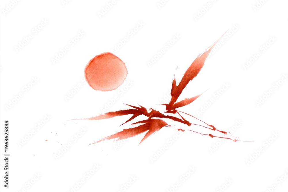 A Minimalist Watercolor Illustration Featuring A Reddish Sun Wallpaper Mural - Decorly Solutions | Decorly Solutions