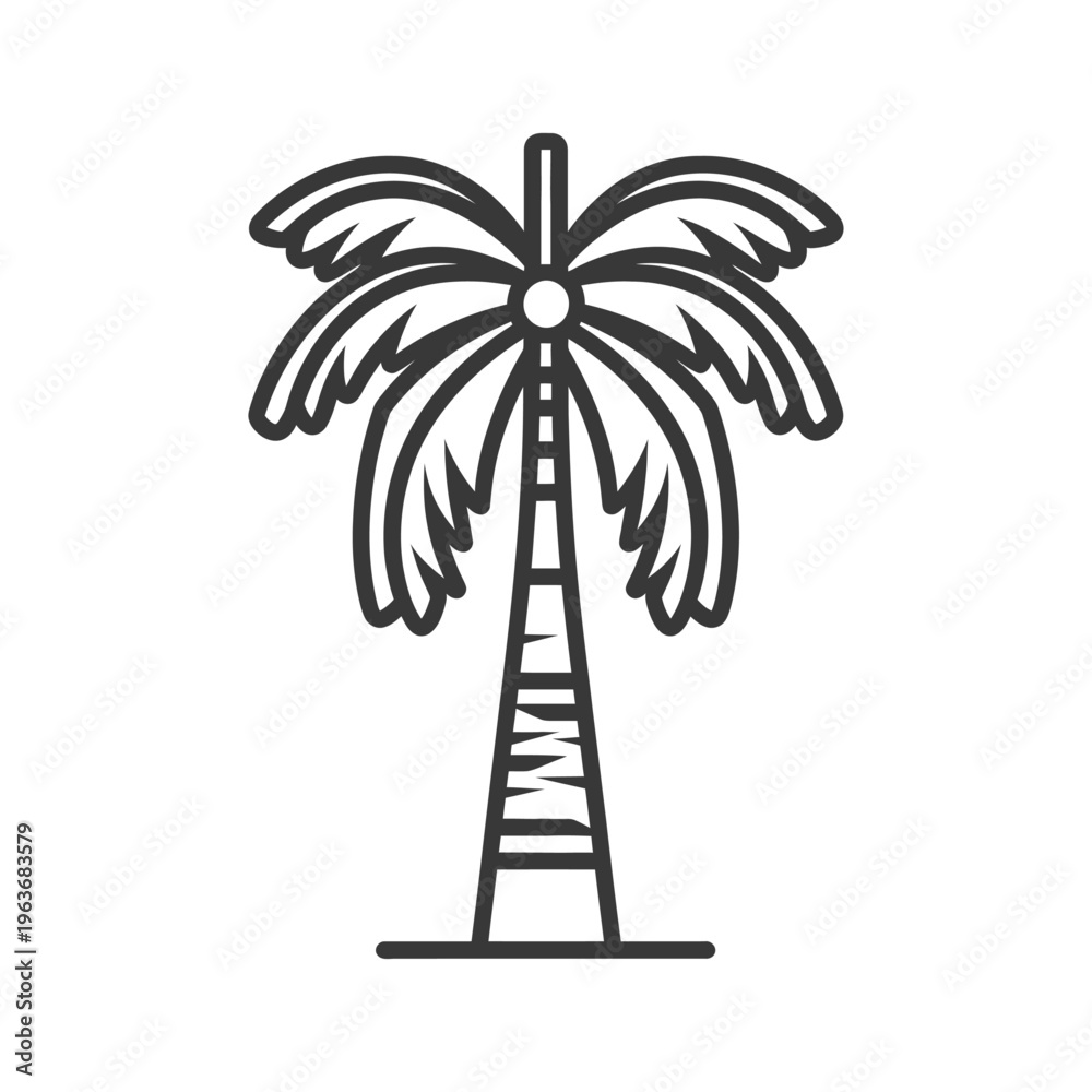 Stylized tropical palm tree illustration with simple line art, vector drawing of plant