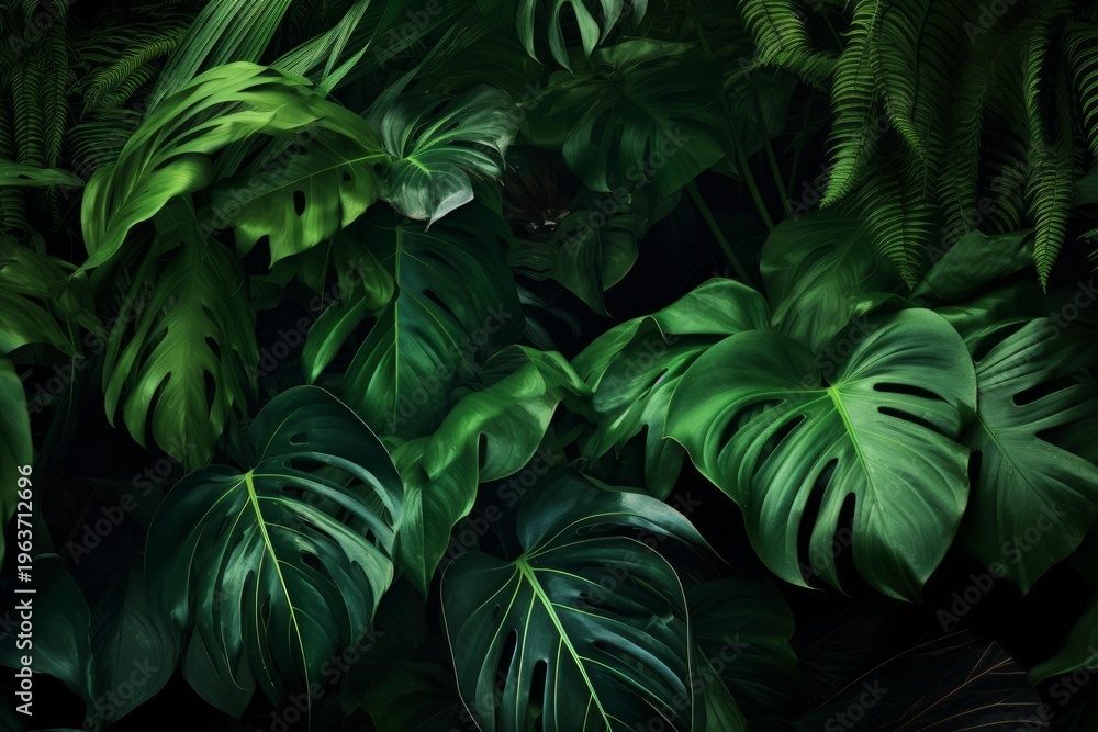 Dark Green Tropical Monstera And Fern Leaves Filling Wallpaper Mural - Decorly Solutions | Decorly Solutions