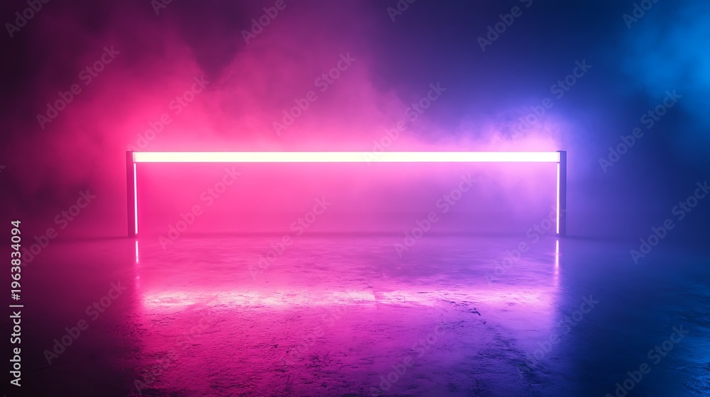 Abstract Neon Rectangle Frame Illuminated Against Smoke Background Wallpaper Mural - Decorly Solutions | Decorly Solutions