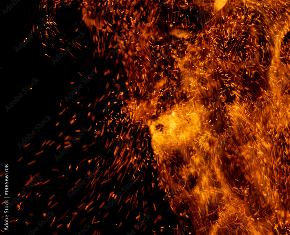 flame of fire with sparks on a black background