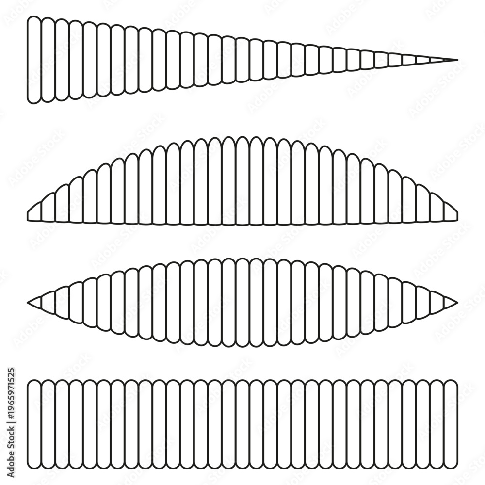 Arch shape set. Semi circle Vector. Ribbed line design. Black outline element. Manual vector only. No autotrace used.